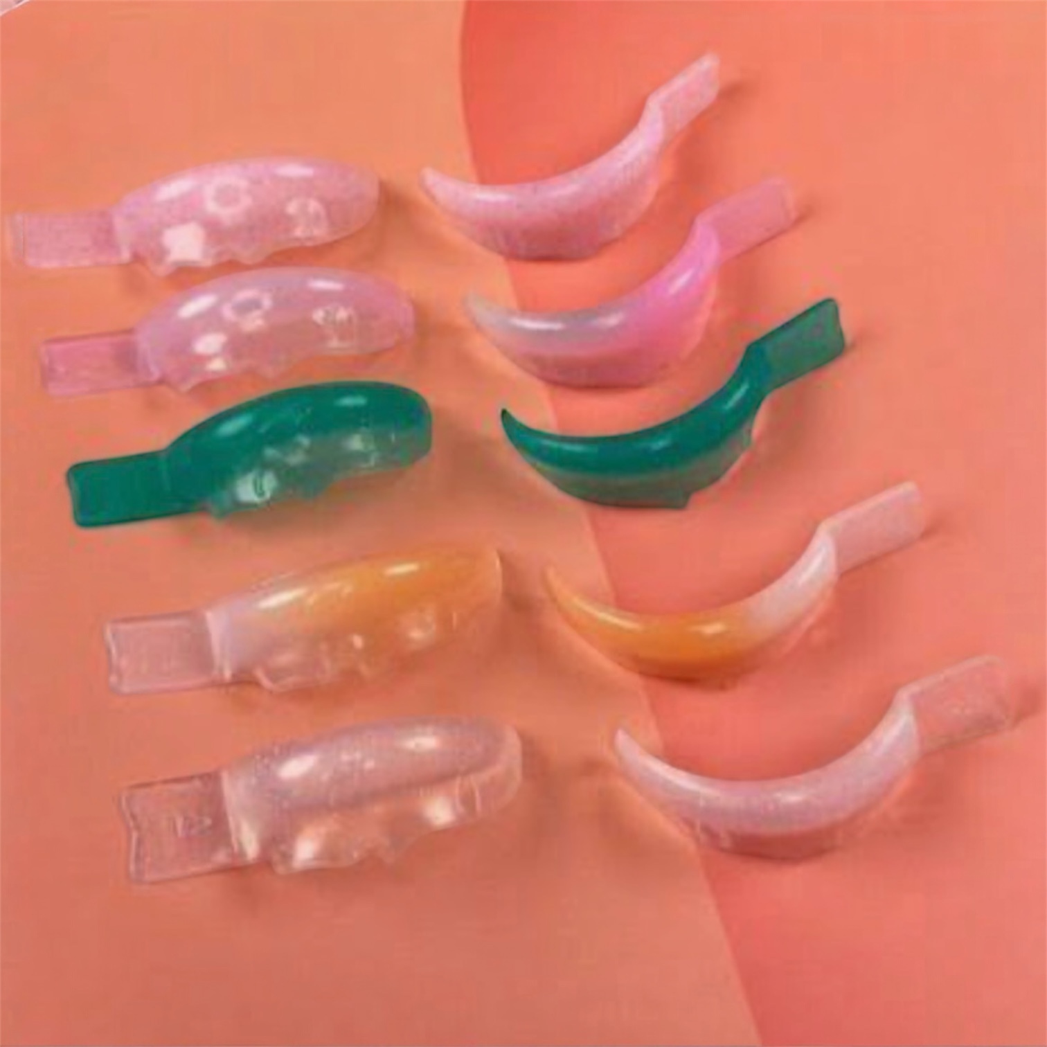 moldes anatomico, flexible, se adapta muy bien al parpado, colores hermosos y con brillos.